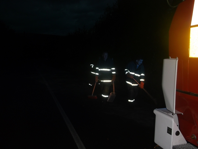 Na miesto ihneď vyrazila jednotka DHZO v počte 1+3 s vozidlo T-815 CAS-32. Po príjazde na miesto zásahu sme boli hliadkujúcimi príslušníkmi Policajného zboru z Drienova oboznámení o potrebe odstránenia olejových škvŕn z vozovky o dĺžke cca 25 metrov v jednom pruhu. Použili sme sypký sorbent a ručné náradie. Následne sme vozovku očistili prúdom vody pomocou asanačnej lišty na vozidla CAS-32. Týmto bol zásah ukončený a jednotka sa vrátila na základňu.